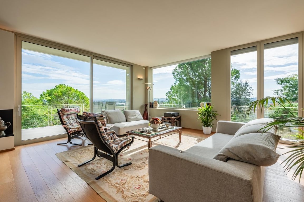 We sell luxury and modern villa in the countryside of Santa Maria a Monte, Pisa province, in a dominant location where it is possible to admire a fantastic panoramic view. From the impressive gate of the villa, it is possible to access the garden which has been created on the rooftop of the house! The villa, accessible with a lift develops for a total of circa 350 sqm on two levels under the ground (-1 and -2) this is surely a non-ordinary construction, very eclectic. The house is also accessibl...
