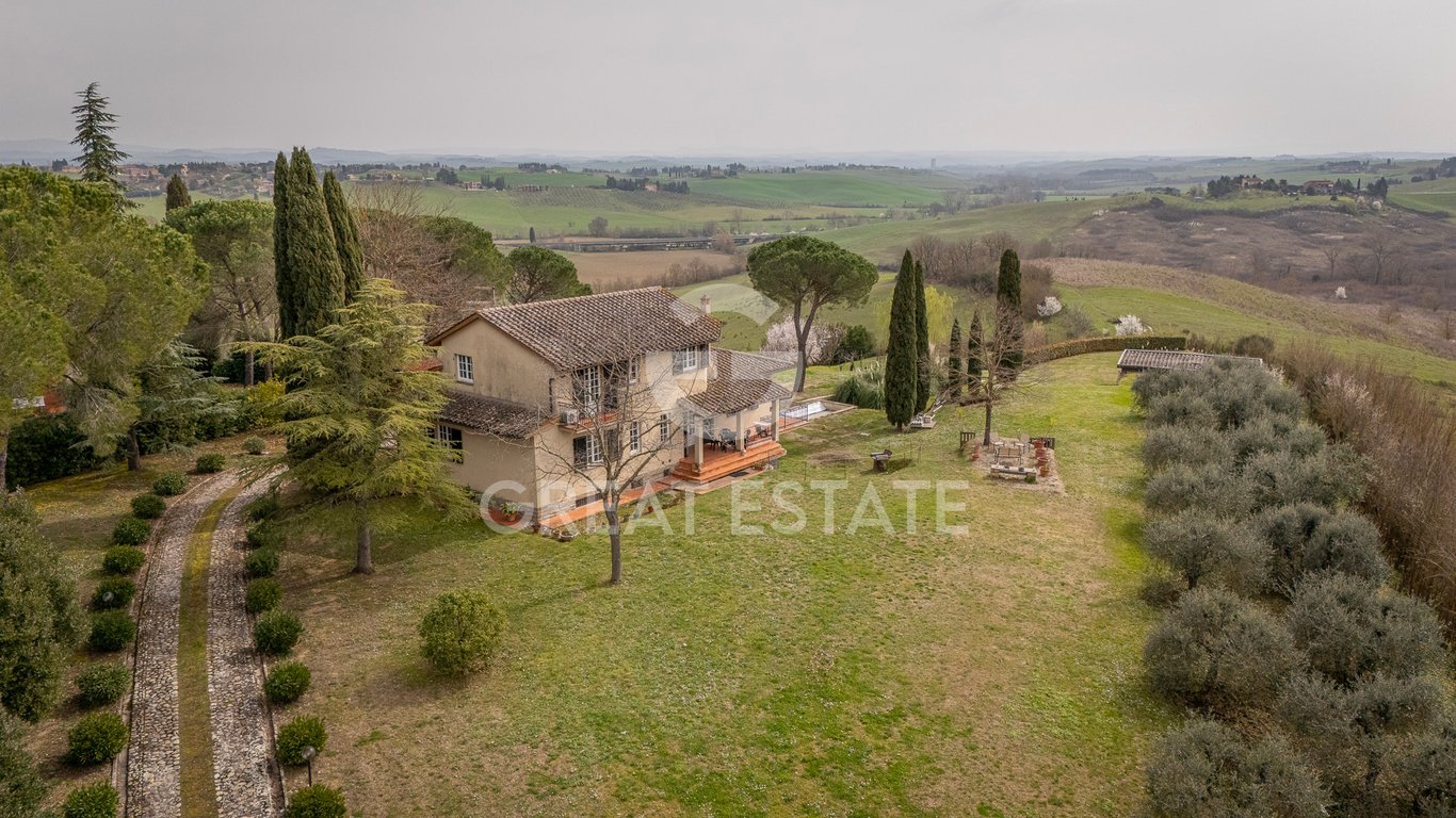 Splendid villa for sale in the heart of the Sienese countryside, enhanced by breathtaking views over the gentle surrounding hills. The property, approximately 400 sqm, built in the late 1970s, is arranged over three levels and offers spacious, bright, and perfectly distributed interiors. The ground floor welcomes you with an entrance leading to a comfortable hallway, an open-plan kitchen, a dining room with TV area and access to the portico, ideal for relaxing outdoor moments. This level is co...