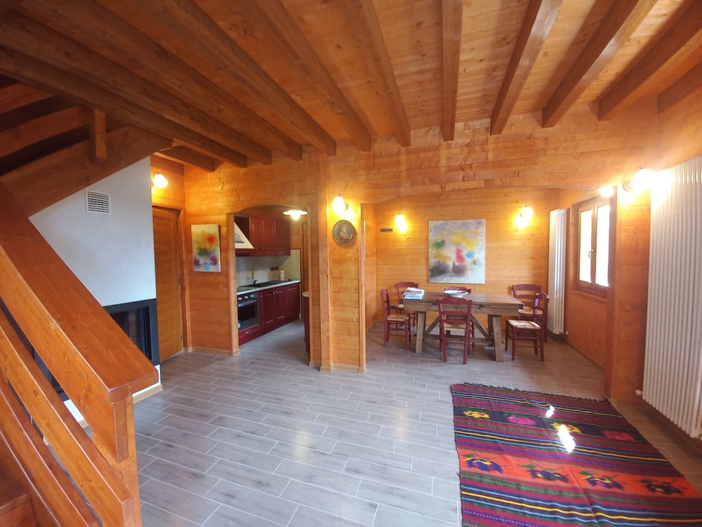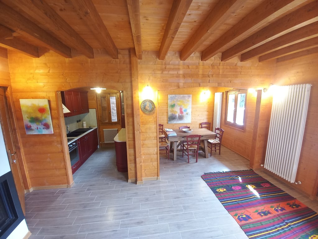 Wooden house on 2 levels, newly built to the highest standard with stupendous view of the Apuan Mountains. Completely insulated, central heating fuelled by pellet burner, solar panels for hot water, electricity produced with photovoltaic solar panels on the roof. Double glass on every window with shutters, 9 external video cameras accessible remotely. Gated garden, private parking space. Situated in the picturesque villa of Rocca Soraggio. Ground Floor Open Space entrance /Living /Dining Room ...