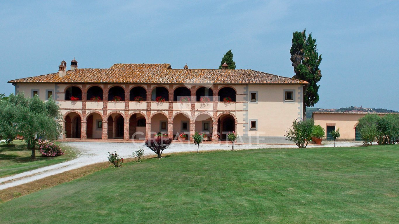 This luxury villa – with historical roots dating back to the 14th century and restored in the 2000s – awaits you in the heart of Val di Chiana, in Tuscany. Immersed in a naturalistic context of great charm, the villa extends over a surface area of approximately 800 sqm, surrounded by a large plot of land (approximately 6 hectares), including farmland, olive groves, and mixed woodland. The two-floor building hosts 11 bedrooms, 8 bathrooms, 2 kitchens, 2 dining rooms, and 2 lounges. The interiors ...