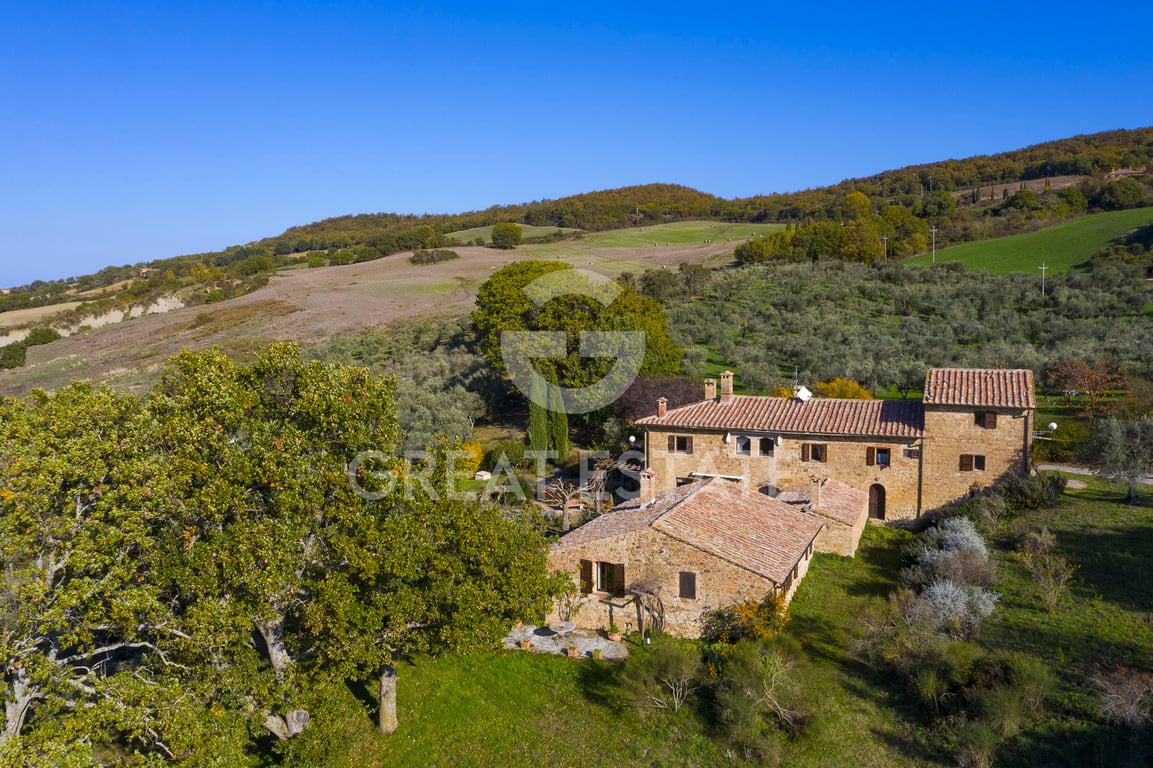 The main house of 340 sqm is connected to the guest house by a beautiful central courtyard paved in terracotta with a view of the panorama. Next to the two residential buildings, we find another accessory building used as a garage and tool shed. The main house is on three floors: on the ground floor we find a large living room with a Tuscan kitchen overlooking the large courtyard which invites convivial events and moments in company; continuing inside we find a service bathroom, as well as a lar...