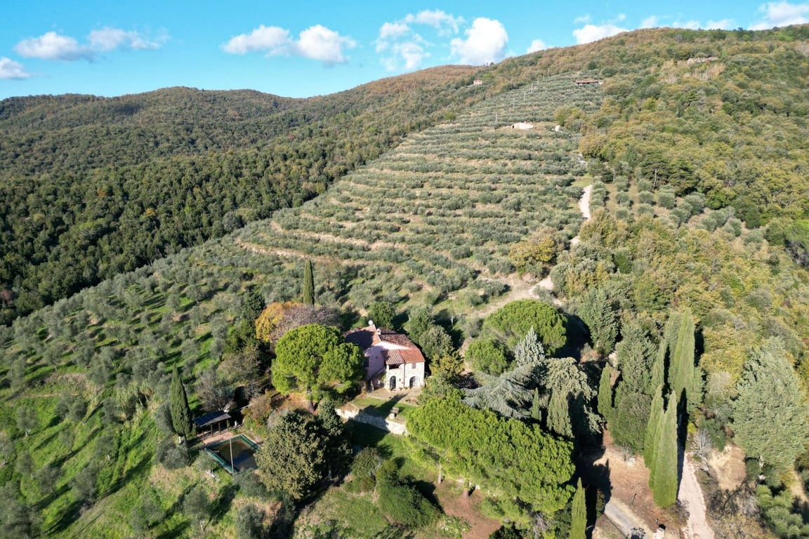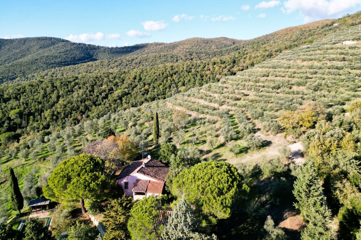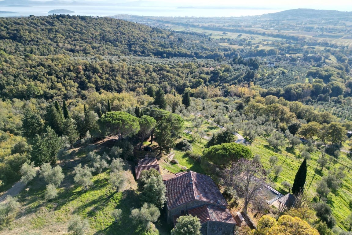 This charming country house with outbuilding, swimming pool, and stunning views of Lake Trasimeno is strategically located on the border between Umbria and Tuscany, perfect for easy access to some of the most famous cities of art such as Perugia, Siena, and Arezzo.Dating back to the 18th century, the 364-sqm house is surrounded by 3.6 hectares of terraced olive groves and retains all the authentic charm of rural dwellings, as evidenced by the wooden beamed ceilings and terracotta floors.The grou...