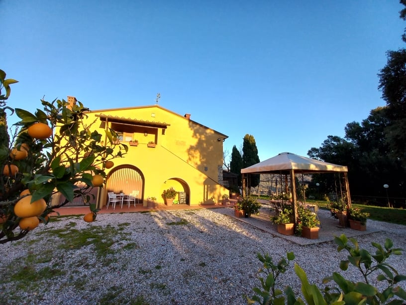 Large farm house mainly olive grove (1000 trees) set in the plains near Pisa. Sold as on going business. Separate small apartment offered for summer rental to tourists. 9 hectares of olive grove and pasture land, all fully fenced plus another 8 hectares of woodland. The villa has been tastefully restored retaining many original features including wooden beams and cotto tiles. Central heating throughout the house aided by roof sun panels. Separate one bedroom apartment for tourists. Separate a...
