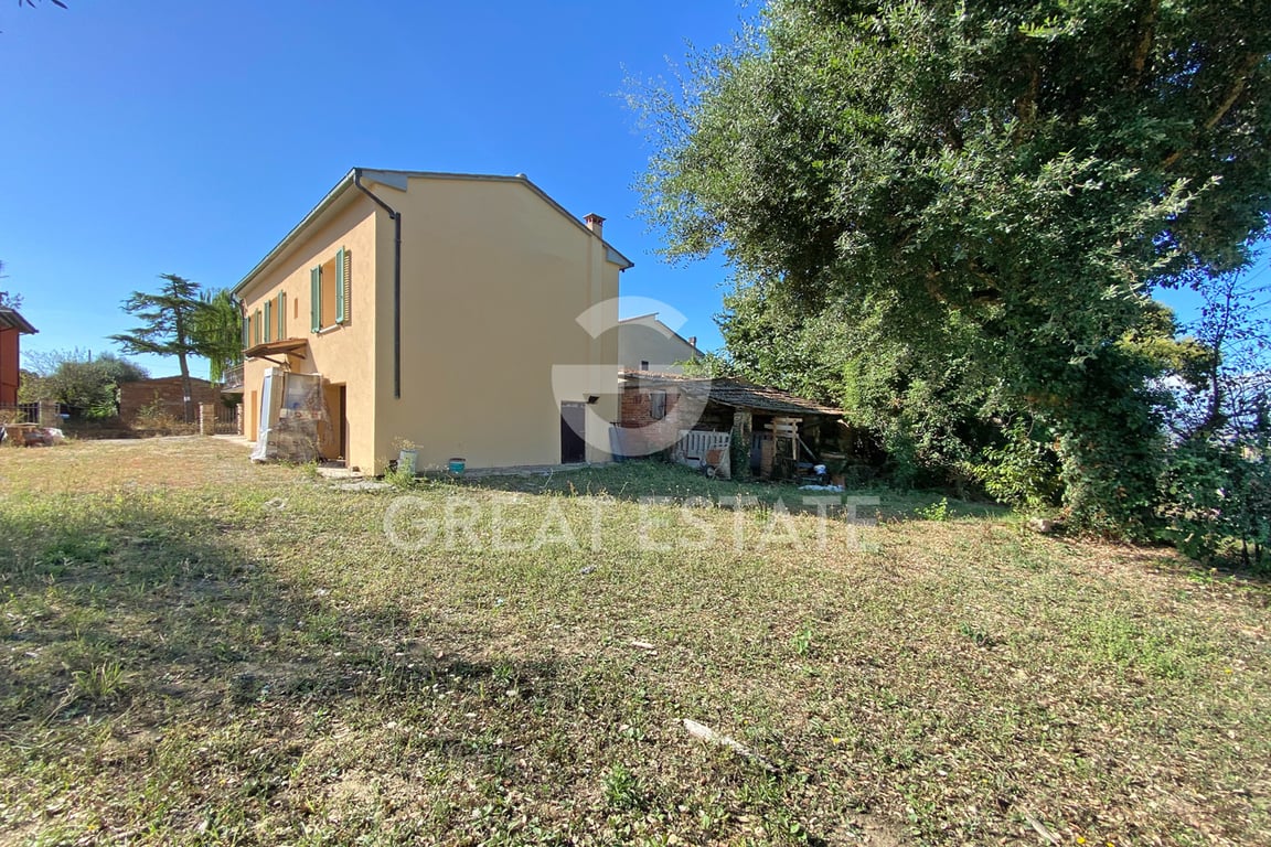 Charming 150 sqm town house with renovation works nearing completion, including a garden, land, and an annex. The property is arranged over two floors: The first floor, with renovation almost finished, is accessible via an internal staircase and consists of an entrance hall, kitchen, living room with direct access to the terrace through a French door, two bedrooms, and a bathroom. On the ground floor, there is a cellar, various storage rooms, a utility room, a bathroom, and a 19 sqm garage. Adja...
