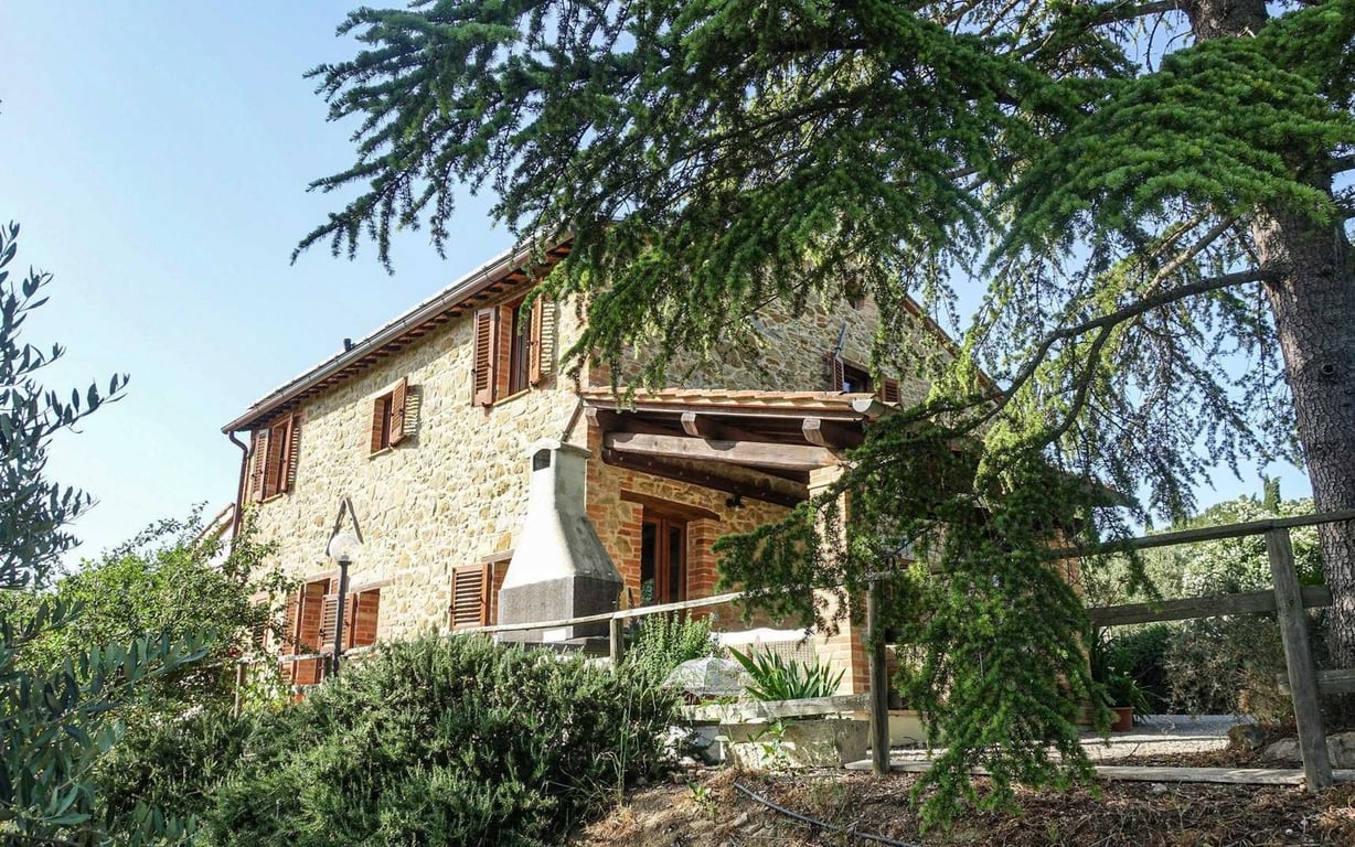 Located in the characteristic Umbrian countryside, close to the ancient village of Montepetriolo, in hilly and panoramic location, stone farmhouse fully restored in 2014.The property is arranged on two levels and includes a canopy and two apartments, for a total of approx. 160 sqm, that can also be connected one to each other, that combine antique taste in finishes with the best modern comforts. The apartment on the ground floor is divided in large living room with fireplace, habitable kitchen, ...