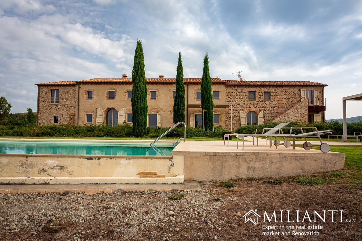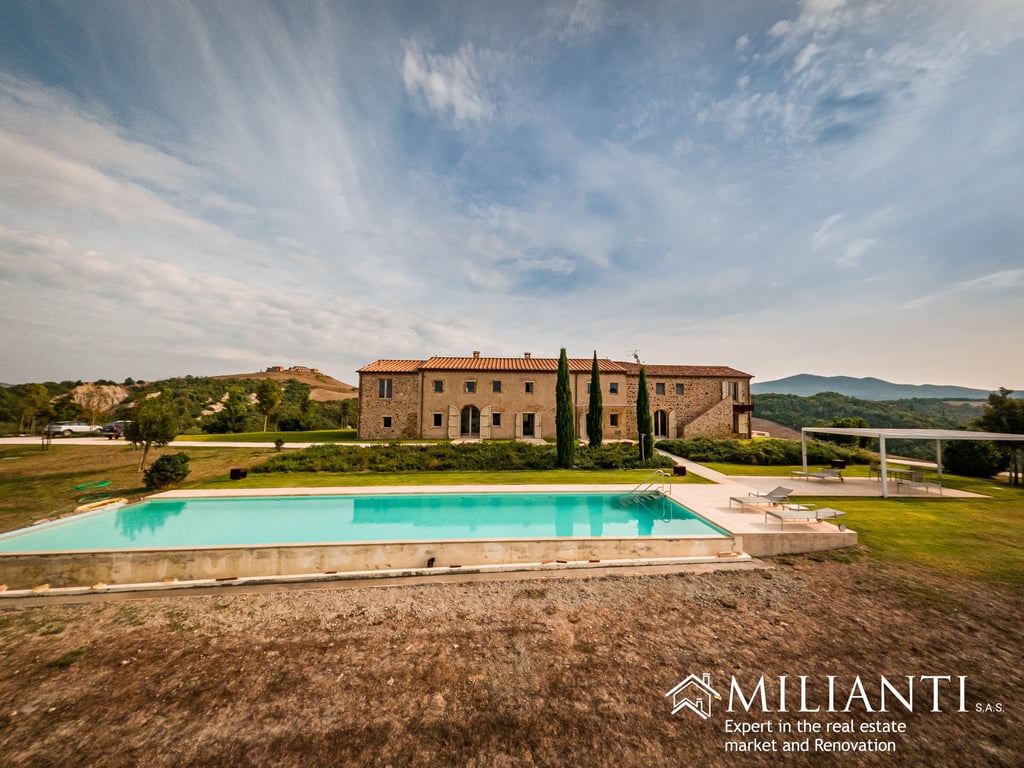 For sale farm in Volterra countryside, 20 minutes from the amazing Etruscan town where it is possible to find all services and shops and 1 hour drive from the Coast. The property is immersed in the unspoiled countryside, on a hilly position with a dominant view over the surrounding countryside, a fairy tale place where the time seems to have stopped. The farm is accessible through a 5 km unpaved road in perfect conditions, the closest restaurant is 6 km by car, in a little ancient borgo on a hil...