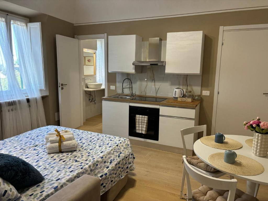 In the first outskirts of Volterra, a few steps from the town centre, we sell 2 renovated apartments with storage/room. Currently the apartments are rented. The access is through a communal door (used by the 2 apartments for sale and a third one).  The second flat, accessible through the communal staircase, is 96 sqm and it has been divided into 2 sections with a plasterboard wall. The first portion has been rented for a while and it consists of a wide kitchen/dining, bedroom and bathroom. Also ...