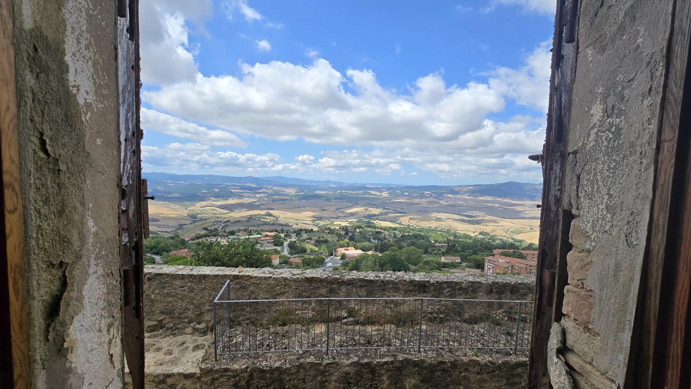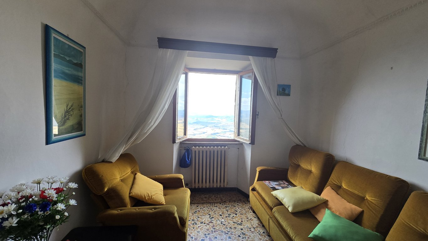 We sell flat situated on the first floor of a condominium a few steps from Piazza dei Priori, in the most panoramic street of Volterra.The apartment develops for a total of circa 130 sqm and it boasts double entrance from the stairs. It consists of: kitchen, living-room, corridor, bathroom, 2 bedrooms and study.The apartment boasts a fantastic panoramic view from the windows over Valdicecina valley, a perfect west/sunset exposition.The apartment requires a complete renovation. It has a great pot...