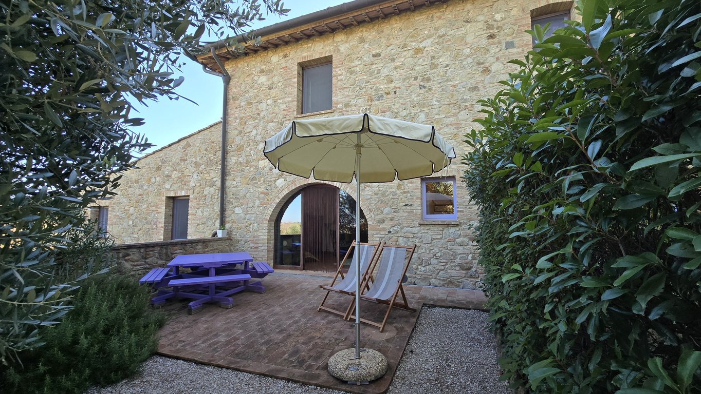In the countryside of Volterra only 4,5 km from the Etruscan town and its services, we have the exclusive right to sell part of refurbished farmhouse with private garden set in a complex with shared swimming pool in a fantastic panoramic location. The complex, which comprises 11 apartments, is easily reachable through a 1,5 km unpaved road in perfect conditions and it is accessible though an automatic gate which opens onto a spacious parking area; from the parking a pathway leads to each house...