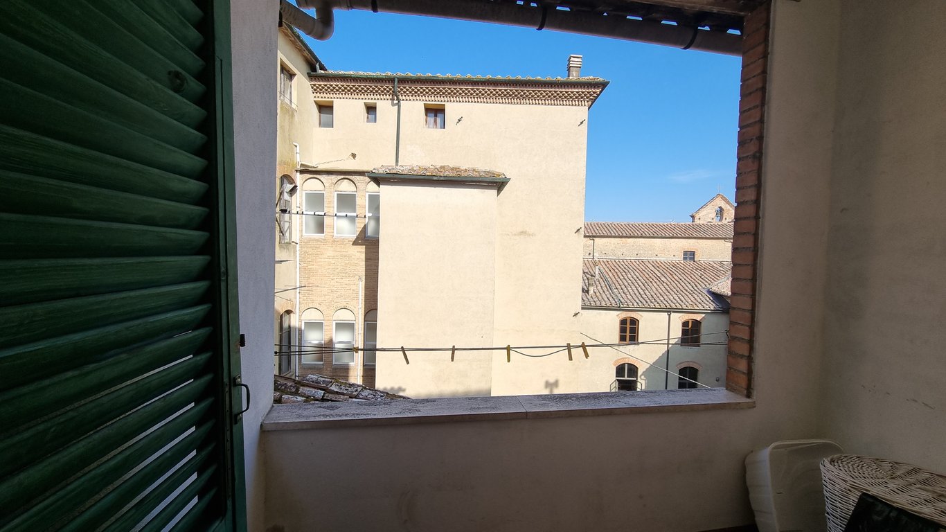 In the historical centre of Volterra we sell second floor flat set in a 6 families condominium. The flat develops for a total of circa 80 sqm and it comprises: entrance, living-room, hallway, bathroom, kitchen/dining-room with access to the roof terrace where it is possible to admire a lovely panoramic view, 2 bedrooms and storage. The apartment is very bright. The sale includes a cellar on the ground floor. The house needs works to be upgraded and personalized. There is town gas heating but the...