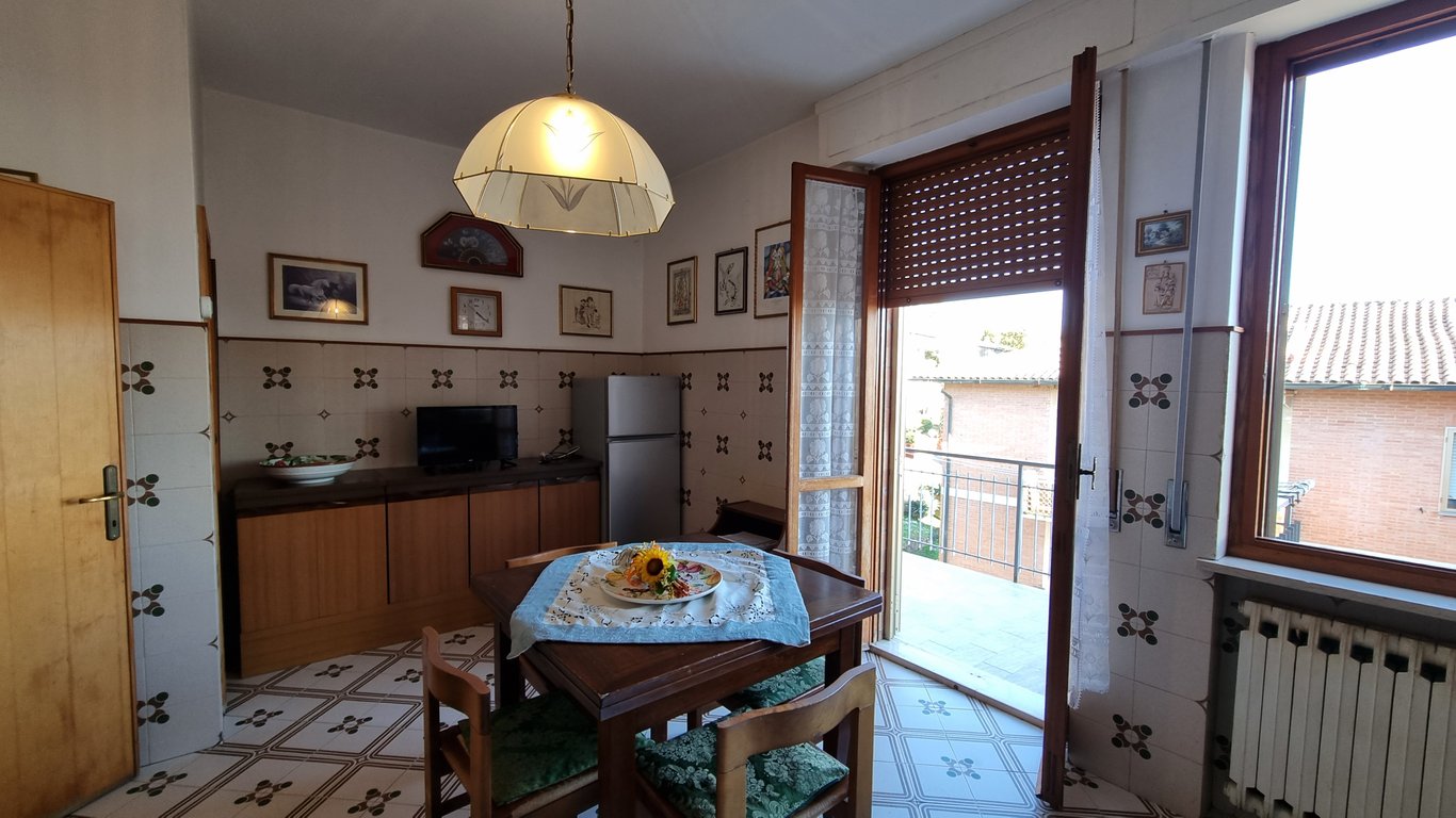 In the first outskirts of Volterra we have the to sell a third floor apartment set in a condominium ( 9 family) with exclusive garage.Internal communal stairs leads to the flat which is composed of living-room, kitchen/dining-room with access to a wide terrace, sitting-room open space very bright with access to the spacious terrace where it is possible to admire a lovely view over Volterra town, 2 bedrooms and bathroom. total 120 Sqmt.All utilities are connected and functioning with town gas hea...