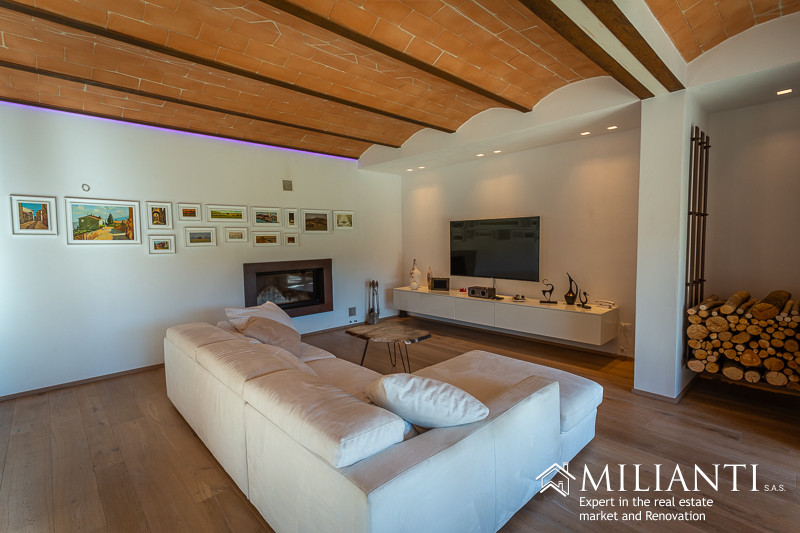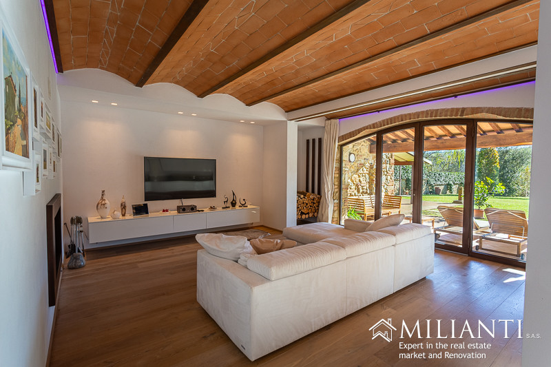 For sale detached, tastefully renovated and ready to move in villa in Volterra countryside, only 10 km from Volterra centre and amenities, fully immersed in the unspoiled countryside, among the olives and wheat fields but at the same time not isolated as there are other houses in the nearness. The estate is a real jewel, it is easily accessible through a 300 meters unpaved road in good conditions. The house was built up in 2010/2011 according to the seismic law, in fact it boasts a reinforced ...