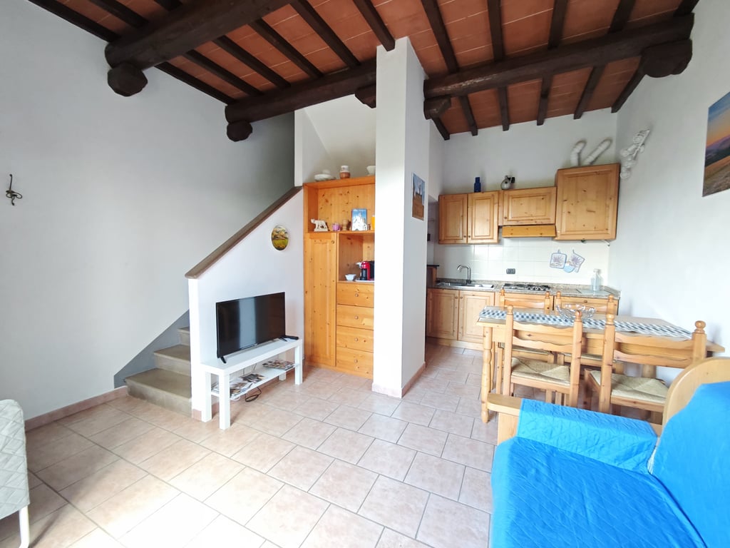 In the countryside between Volterra and San Gimignano we sell flat in a farmhouse divided into 10 apartments. The farmhouse is easily accessible from a paved road. The flat for sale is 41 sqm and it consists of: living-room/kitchen, storage on the ground floor. Bedroom and bathroom on the first floor. The unit boasts beamed ceilings and a lovely panoramic view. It is ready to move in as the sale includes the furniture. Each apartment is assigned a piece of exclusive garden with gazebo and there ...