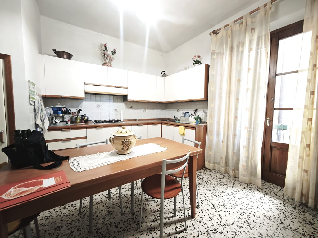 In Volterra first outskirts, only a few steps from the historical centre, we sell first floor apartment, part of a condominium. The flat is composed of: hallway, smaller bedroom, kitchen/dining-room with terrace, storage, bedroom, a wide living-room, bathroom and third bedroom. All installations are functioning and a new boiler was installed in 2023. The sale includes a 6 sqm cellar and a share of the common garden.