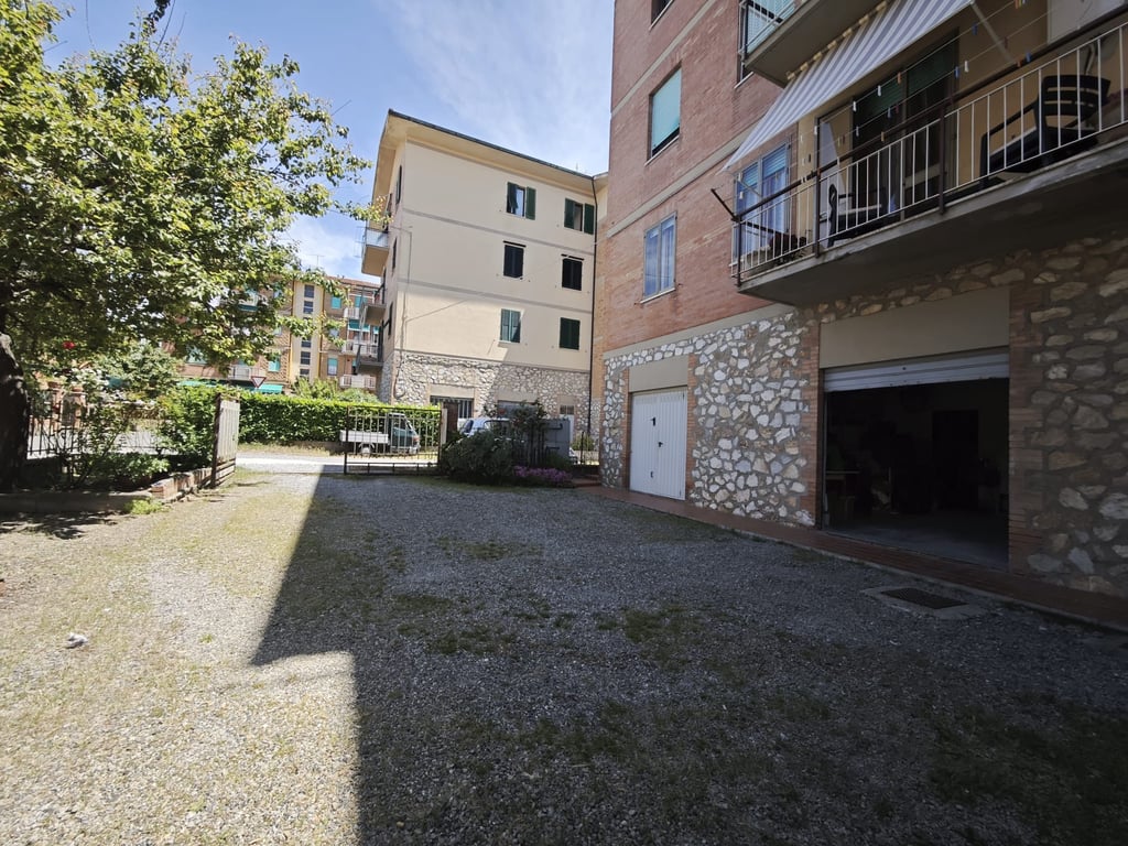 In the outskirts of Volterra we sell apartment set in a condominium close to Conad supermarket. The palace is very well-maintained and there is a huge shared garden. The flat is set on the first floor with private 24 sqm on the ground floor.The apartment develops for a total of circa i90 sqm and it is in good conditions with 2 terraces. It consists of: hallway, kitchen/dining-room, storage, terrace, corridor, south facing living-room with terrace, single bedroom, bathroom double bedroom and stud...