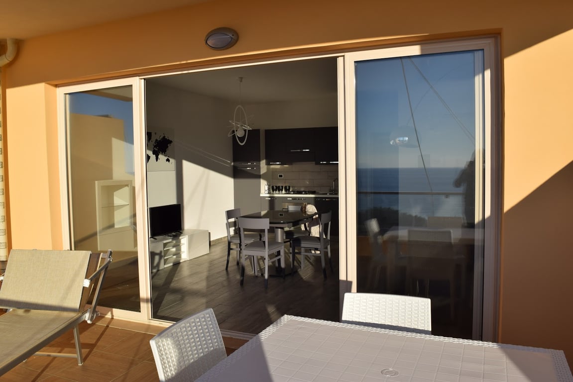 Apartment set inside the complex called ZAMBRONE VILLAGE located in a quiet position and with panoramic sea views close to basic necessities that can be easily reached on foot. The sea is one kilometer and can be reached on foot in minutes. The apartment is located on the raised ground floor with an independent entrance, and consists of: Open plan lounge with kitchenette, one double bedroom and a second bedroom with bunk beds, bathroom with shower, two terraces - one on the front of 15 sqm ove...