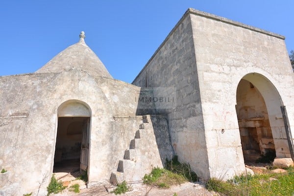 Land with existing rural buildings 3 old stables + 240 sqm building area Three splendid and ancient stables stand on this large property. Preserved in excellent condition, they are characterized by the typical Apulian stone. The three structures, a 18 sqm lamia, a trullo with annex lamia of 38 sqm in total and a further 18 sqm lamia are positioned in various elevated points of the land and represent an excellent investment, as there is the possibility of new construction. Two new buildings o...
