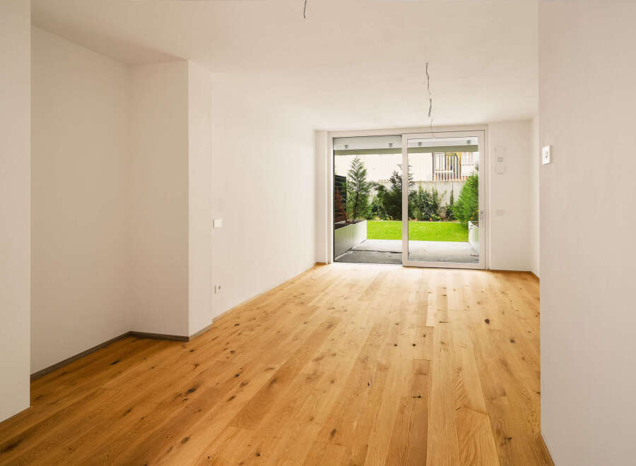 This two-room flat has a north-east-south orientation and is open on three sides. The interior layout comprises a spacious living area with living room and open-plan kitchen, a double bedroom and a bathroom. But the real surprise is the large south-facing garden which, together with the smaller north-facing garden, creates an oasis of relaxation. The flat also has its own entrance. The offer includes a cellar and as an extra there is the possibility of acquiring one or more garages of various si...