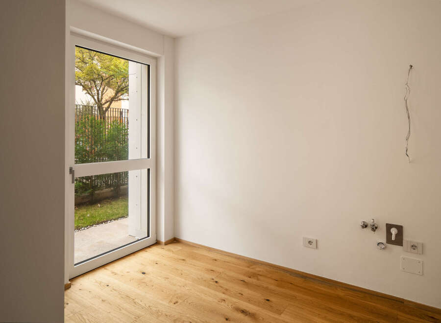 This flat is located on the ground floor and faces north-south. The interior offers a cosy living area with living room and kitchen, a bedroom with double bed and a bathroom. But the real surprise is the large south-facing garden which, together with the smaller north-facing garden, creates an oasis of relaxation. The flat also has its own entrance. The offer includes a cellar and as an extra there is the possibility of acquiring one or more garages of various sizes. "Zara Eleven" is the result...