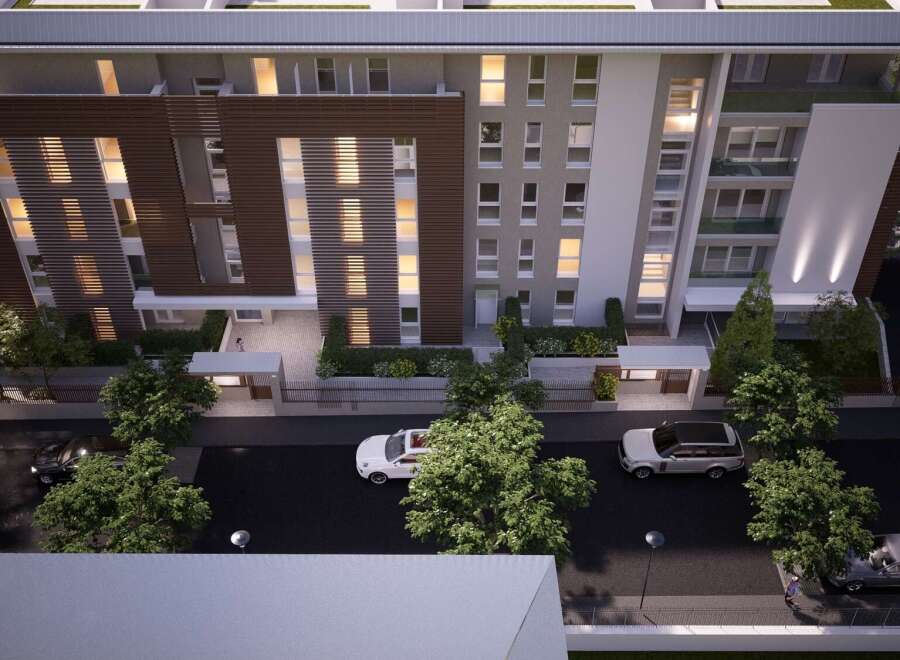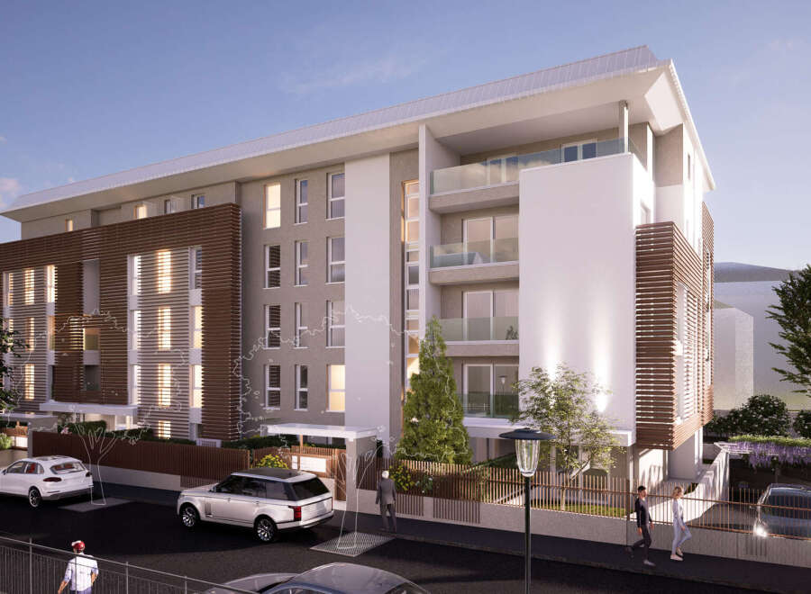 This ground floor flat with a north-west-south orientation, which offers extensive natural light and breathtaking views on three sides, is generously designed to create spacious rooms: The living area welcomes you with a bright living room and a modern open-plan kitchen. The sleeping area is equally charming, with a spacious master bedroom and a versatile double bedroom, both accompanied by two bathrooms. A real touch of luxury are the two private gardens that surround the flat on two sides. Inc...