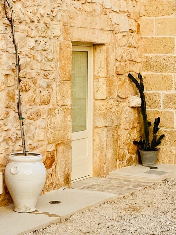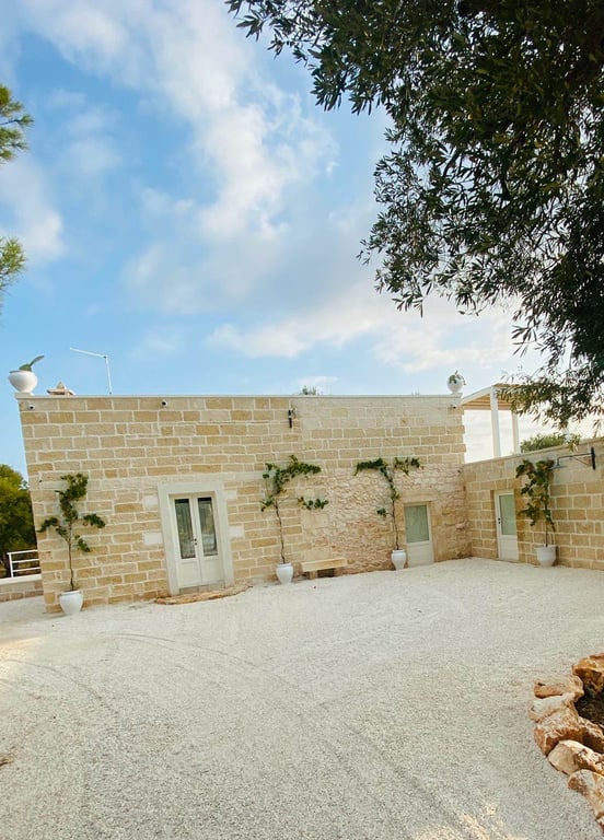 Ancient rustic cottage totally renovated with stately and fine finishings, located in the amazing countryside of central Apulia only a few minutes away to the well-served town of Carovigno, in the Valle D’Itria, close to the popular Ostuni and its coast. The property consists of a main body, an independent guesthouse and another independent suite on the second floor. The main body completely made of exposed local stone, consists of a living room with open kitchen and wood-burning fireplace and...
