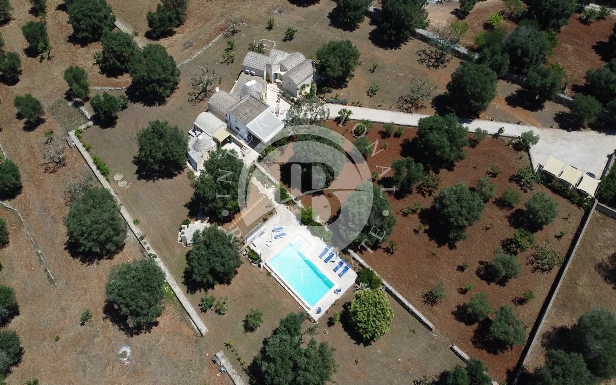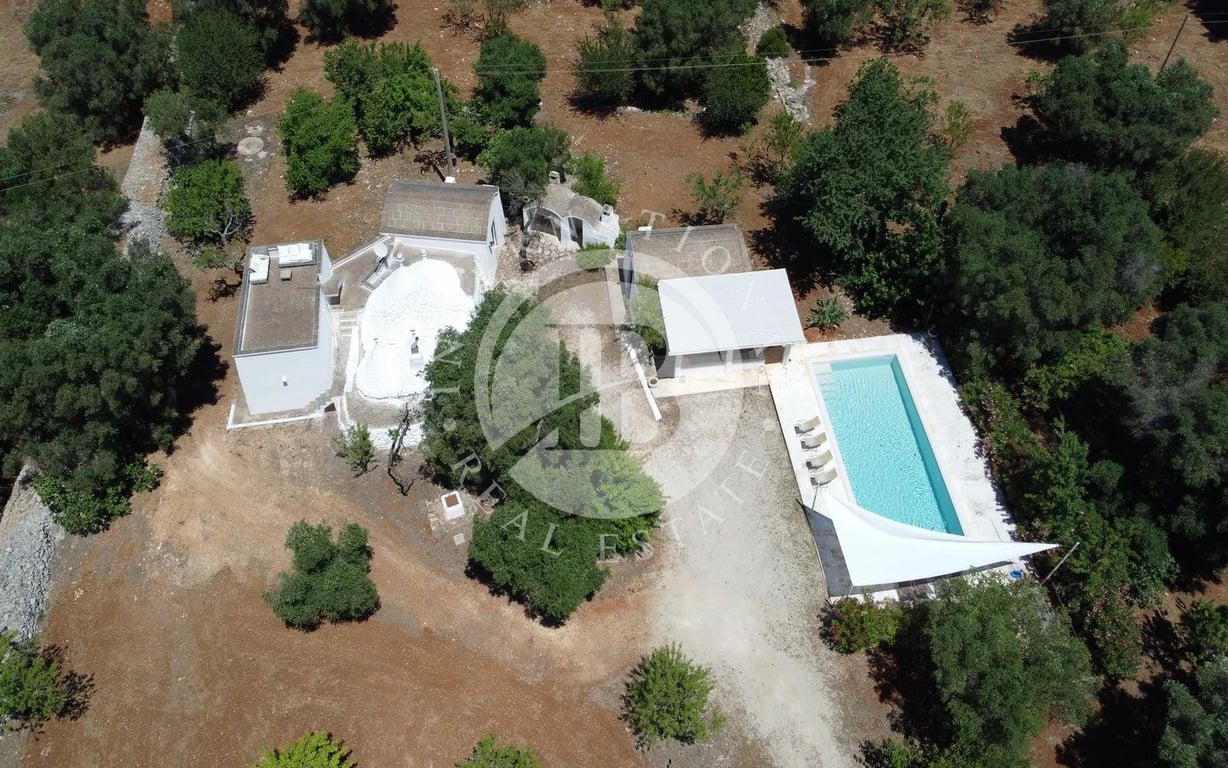 Charming Estate with Villa, Trulli, Lamie, Infinity Pool and Expansive Land In Ceglie Massapica Nestled in a peaceful and private area, just a few kilometers from essential services and along the picturesque Apulian Aqueduct cycle path, this stunning property offers a perfect blend of authenticity, comfort, and natural beauty. The estate includes: Entrance: An automatic gate opens onto a parking area that accommodates 3–4 cars. A well-lit gravel path leads to the outdoor patio, the true heart ...