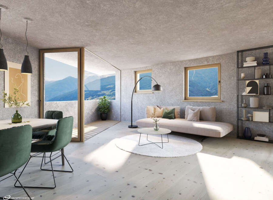 On the first floor, you’ll find this bright three-room apartment offering stunning mountain views. The centerpiece is a spacious open-plan kitchen and living area with direct access to a sunny terrace—an ideal spot for relaxation and enjoyment. Two peaceful bedrooms, a modern bathroom, and a separate toilet provide both comfort and convenience. With a south-facing orientation, the rooms are bathed in natural light throughout the day, creating a warm and inviting atmosphere. Built to the high sta...