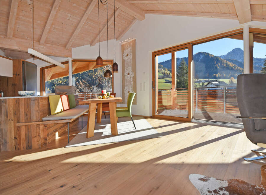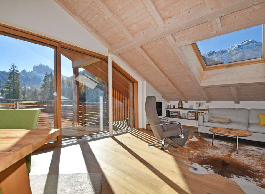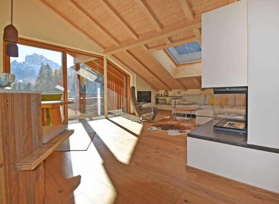 Discover an extraordinary opportunity – a modern, luxurious property located in the entire attic of a multi-family building built in 2020. This exclusive apartment features a bright and inviting living kitchen with large, wide windows and skylights, providing an exceptionally light-filled atmosphere. Enjoy breathtaking views of the surrounding Dolomites and nature, making this setting truly unique. The apartment has been modernly furnished with great attention to detail, creating a cozy ambiance...