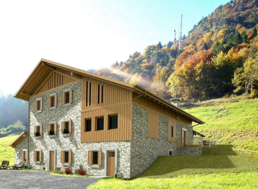 An off-plan villa for sale in a tranquil and panoramic spot with wonderful mountain views in Breguzzo in the Trentino area. Breguzzo is located just 20min from the ski area in Madonna di Campiglio and also less than 45min from popular holiday are Lago di Garda. The project can still be adapted to the needs and requirements of its prospective owner and there are different variants including a 5 apartment house or a single family villa. The internal area is about 440m2 and total size of the plot a...