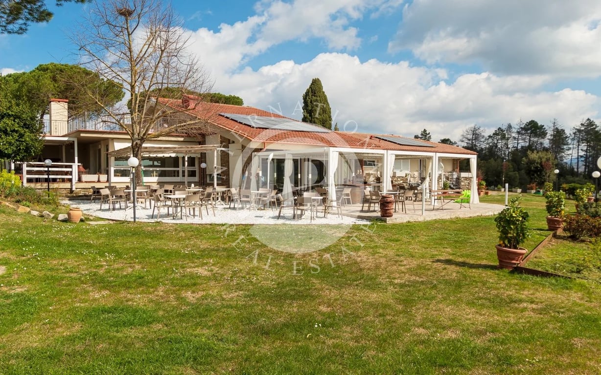 Renovated Villa With Lake, Pool And Panoramic Views In Greve In Chianti This luxury villa, finely renovated in 2021, is set within 3 hectares of private land and features a stunning 2,200 sqm artificial lake. Unique in its kind, the property combines a private residence of approximately 289 sqm with a prestigious hospitality structure of around 460 sqm, ideal for hosting guests or exclusive use as a private estate. The villa’s interiors stand out for their elegance and comfort, featuring spaci...