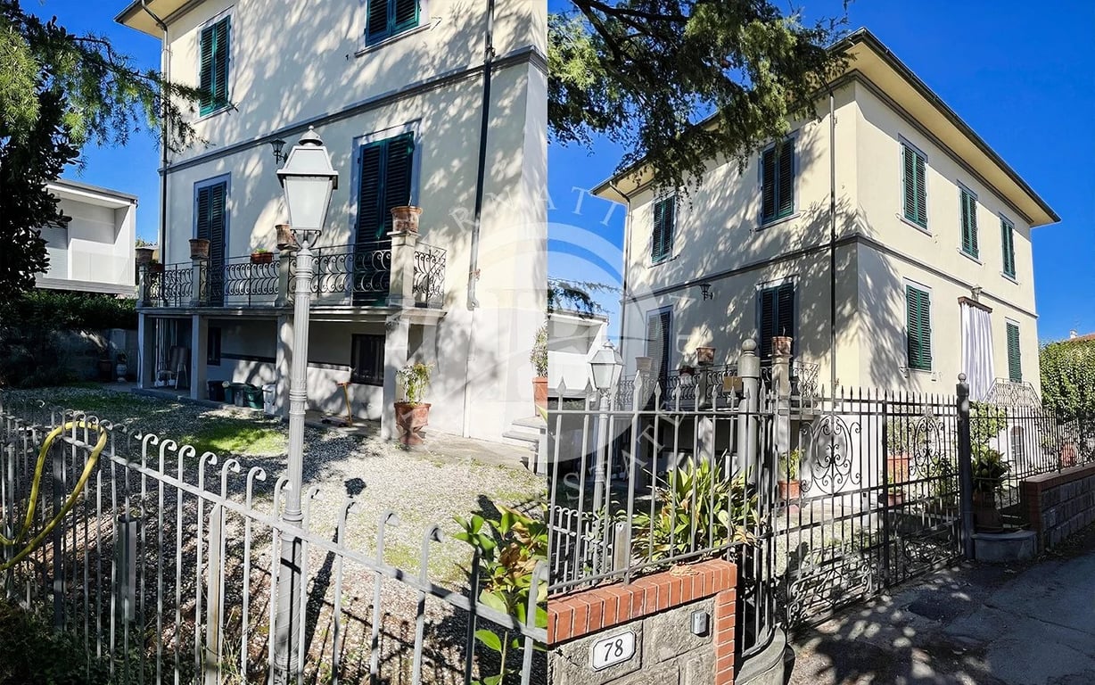 Elegant Art Nouveau Villa Just Steps from the Historic Center Located right next to the city walls, in a quiet and private area, this splendid Art Nouveau villa is offered for sale. The property is accessed via a private cul-de-sac, surrounded by greenery and impeccably maintained. The villa is arranged over several levels and consists of: Basement level: a large room ideal as a kitchen and dining area, a WC, laundry room, and convenient storage space; Raised ground floor: welcoming living ro...