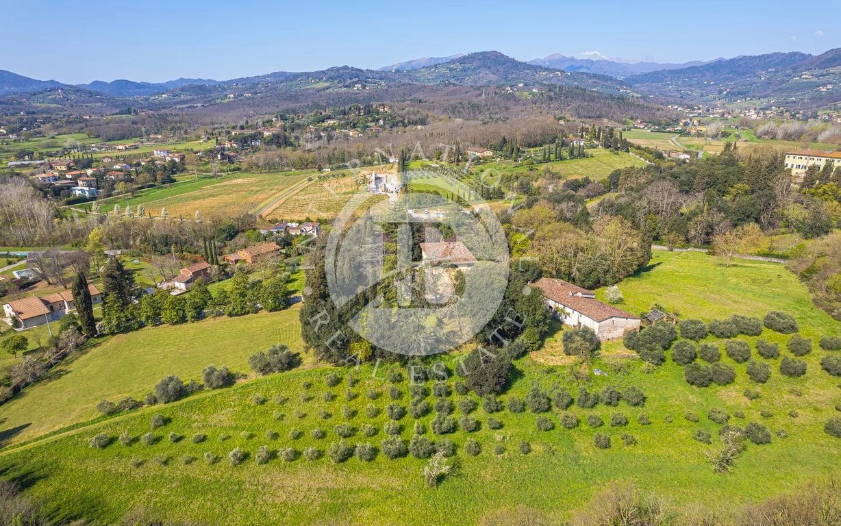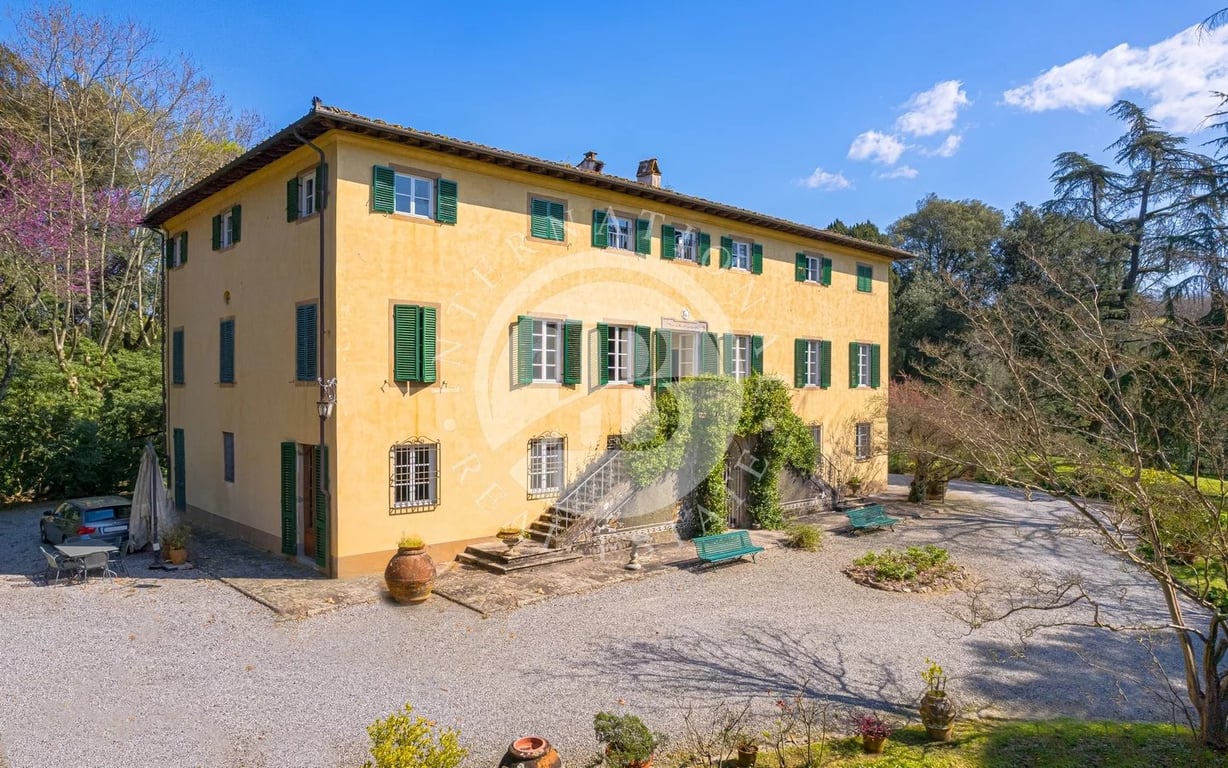 Period villa featuring frescoes and extensive grounds, located just minutes from Lucca's historic walls. Situated in a privileged panoramic position on the first hills surrounding Lucca's historic center, this prestigious property is a superb example of Lucchese historical architecture. The main residence spans 900 sqm across three levels, all conveniently connected by an internal lift. The property underwent a meticulous restoration in the 1990s, which preserved the original materials and pe...