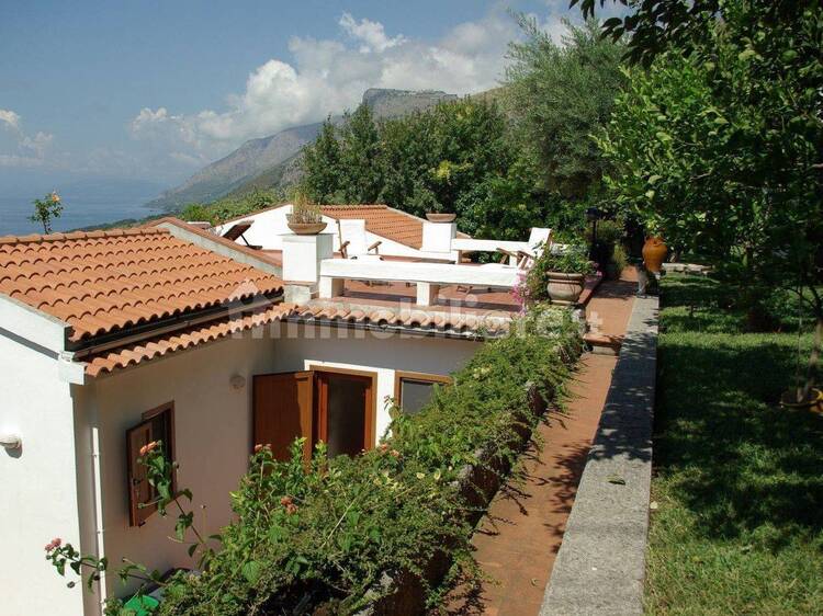 Independent detached villa located in a sunny and panoramic position, about 1,5km away from the beaches of Maratea. The villa is placed mainly on one level and the upper floor of 70 sq m, consisting of a large porch equipped with an outdoor kitchen, a barbecue area, a bathroom, a room for storage use and an area used as a solarium overlooking the gulf. The villa also has a basement with independent entrance and with windows so can be used as a guest house and composed of living room with open...