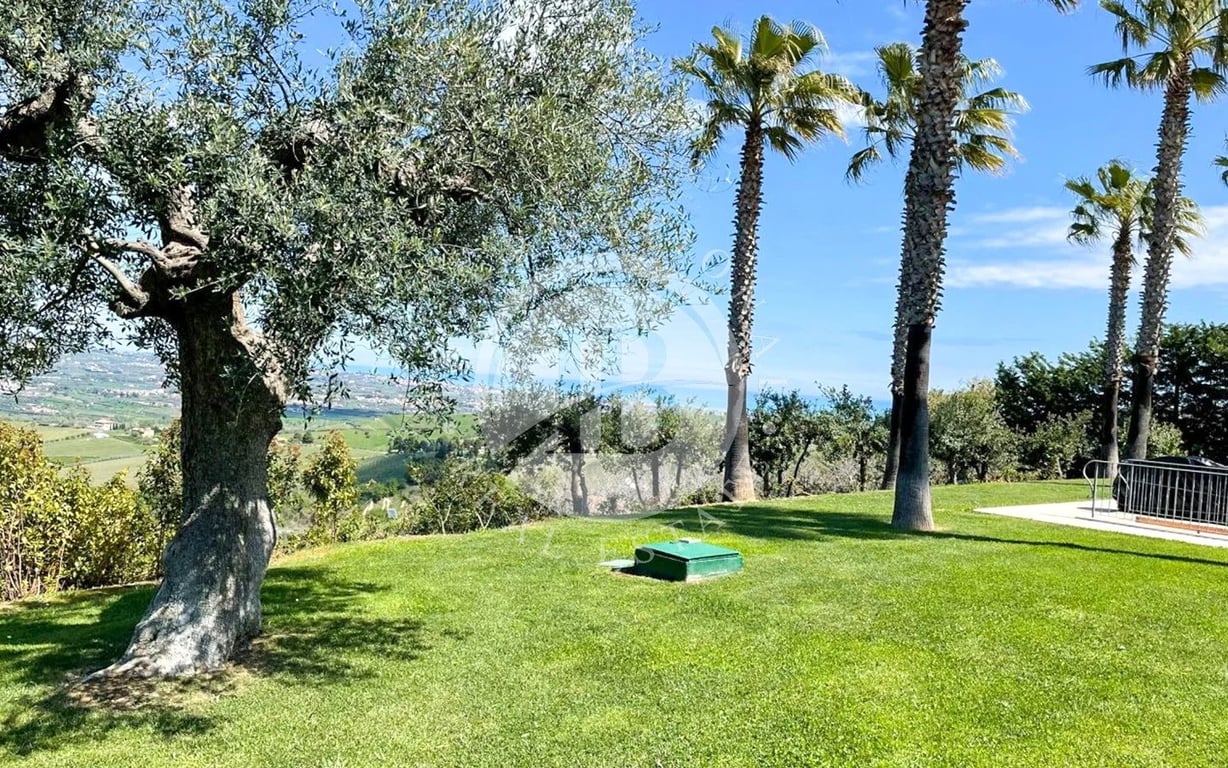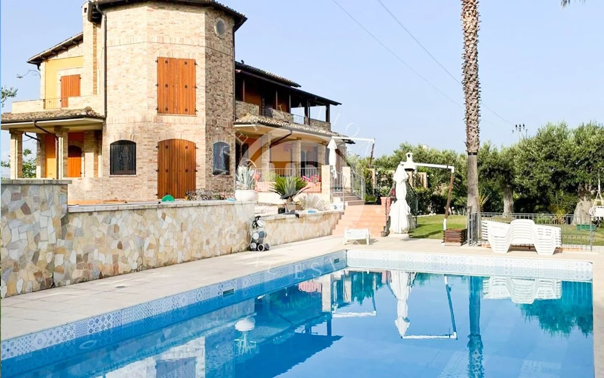 Prestigious Panoramic Villa with Pool between Abruzzo and Le Marche, Morro d’Oro Set in a unique and commanding position on the border between Abruzzo and Le Marche, this splendid villa is nestled in lush greenery and surrounded by a beautifully landscaped, fenced garden of approximately 3,500 sqm with a panoramic swimming pool, ancient olive trees, and palm trees. The property enjoys a truly breathtaking view that stretches from the Adriatic Sea to the Monti della Laga, Gran Sasso, Sibillini M...