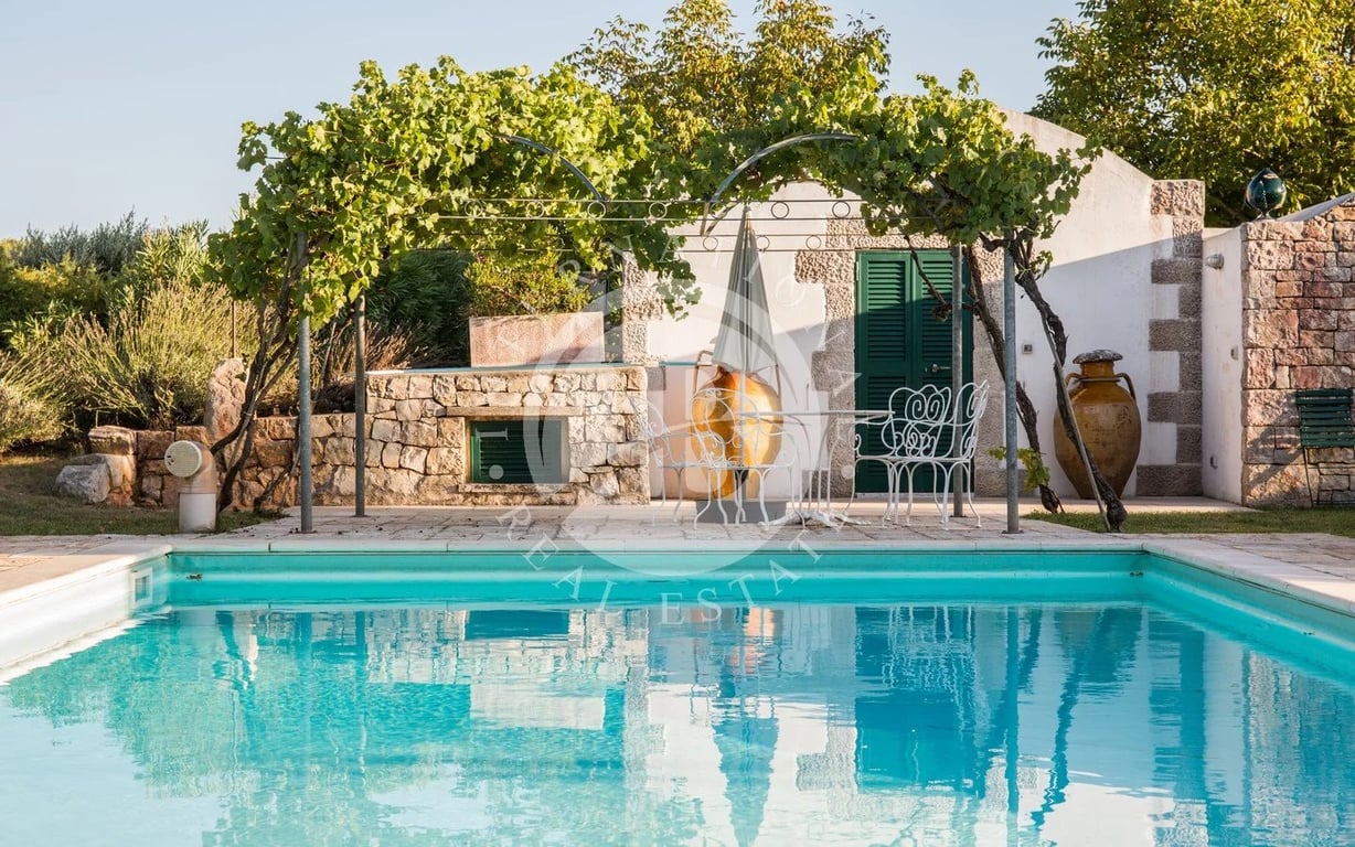 Residential Complex with Trullo, Lamie, and Pool Nestled in the peaceful countryside of Puglia, this enchanting residential complex with pool offers a perfect balance between authentic charm and modern comfort. Set in a secluded location, it is surrounded by a private garden of 5,000 m2 and a total land area of approximately 11,750 m2. The property covers about 180 m2 of indoor space, divided into three independent living units. The main house, set within a beautifully restored trullo, features...