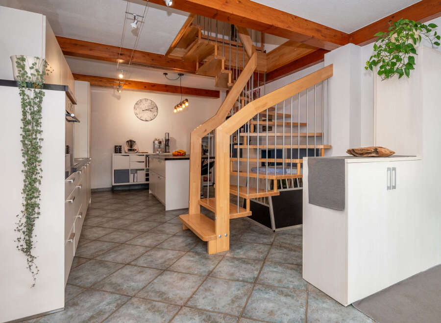 The property is located in Wiesen in the Pfitsch Valley, surrounded by mountains and nature. The train station is within walking distance. The Ladurns and Ratschings-Jaufen ski areas are only a few minutes away by car. In summer, many hiking trails begin right on the doorstep. Sterzing with shops and restaurants is also nearby. The terraced house extends over two floors. On the ground floor there is a spacious eat-in kitchen, a living room, a guest WC and a pantry. On the first floor there are t...