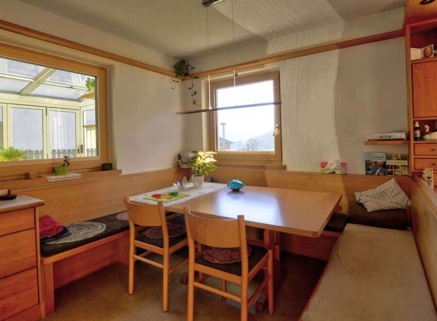 Terraced house in a beautiful location in St. Martin - Gsies. On the first floor there is a spacious kitchen with conservatory, living room, storage room and a daytime WC. The first floor is reserved for sleeping areas, where there are two bedrooms and a bathroom. On the second floor there are a further two bedrooms and a WC. Complete with garden, spacious cellar & garage box next to the house.