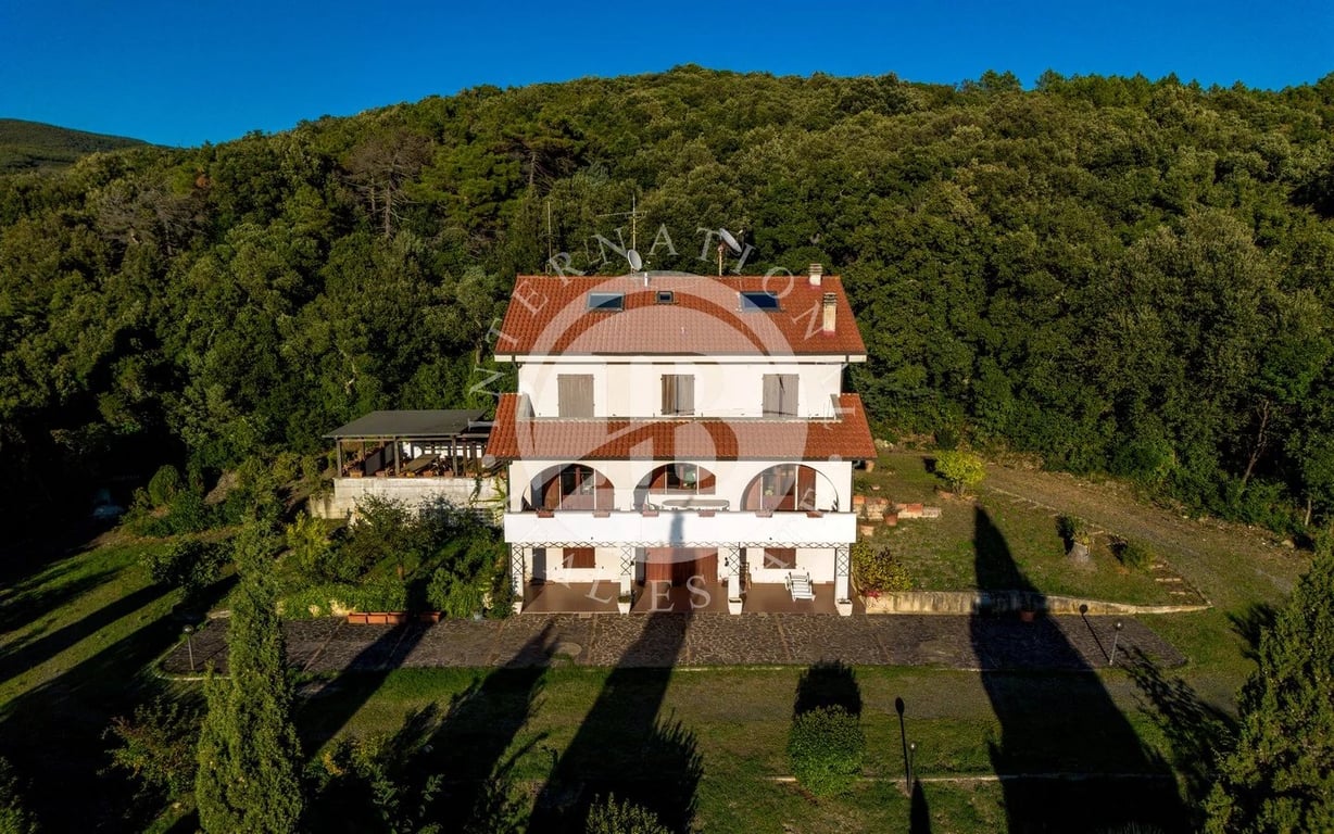 Prestigious Residence with Panoramic View over the Etruscan Coast We are pleased to offer for sale a prestigious property located in the municipality of Riparbella (PI), positioned on the first hill with panoramic views of the Etruscan Coast and within close proximity to the main seaside destinations of the area. The residence, set within 1.5 hectares of land, extends over approximately 370 sqm across three levels and features architecture that preserves the authentic Tuscan charm, with spaciou...