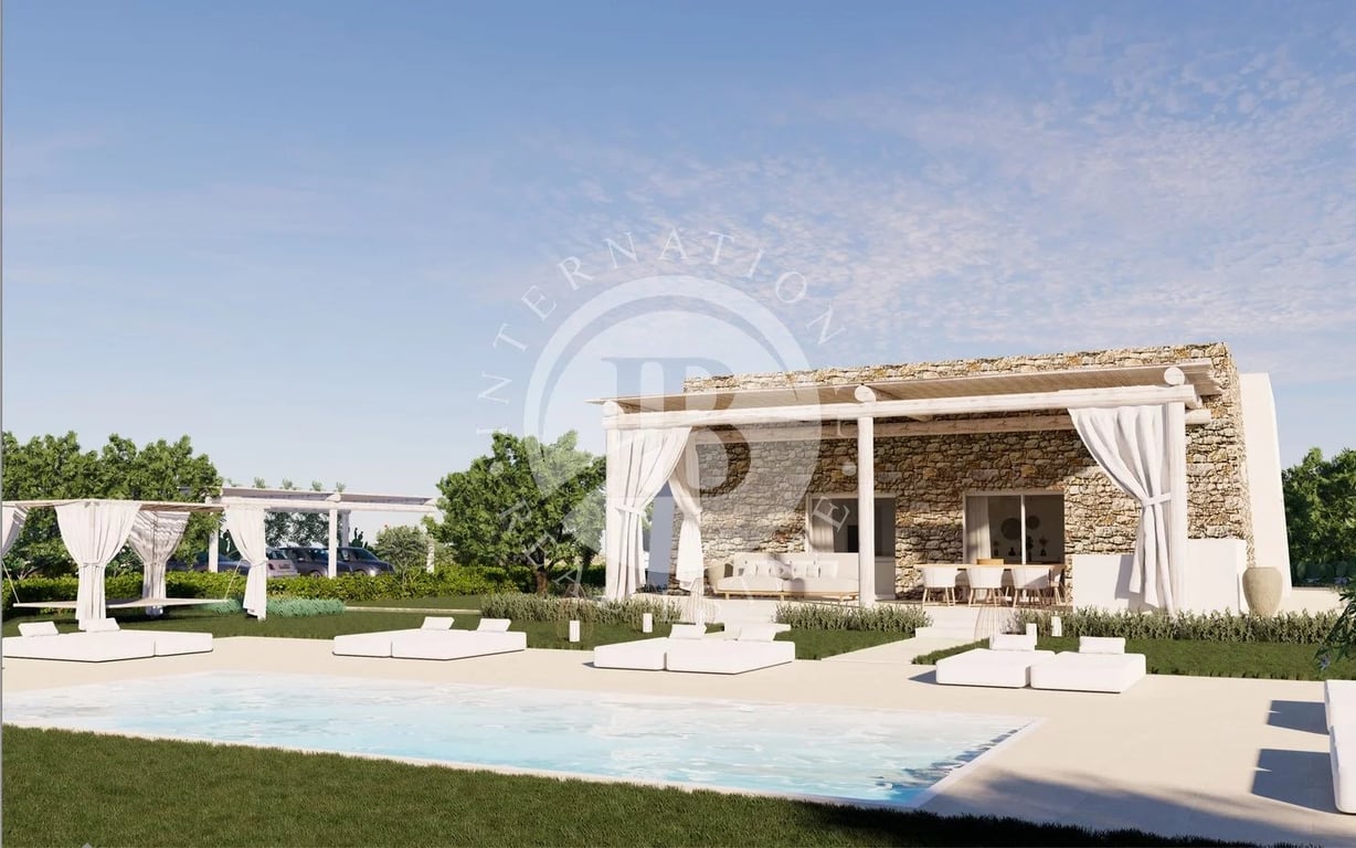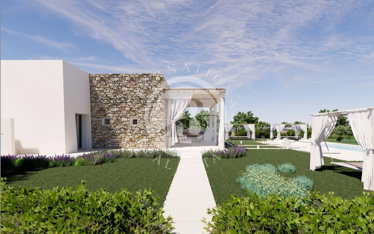 Newly built villa in Salento, Apulia 133sqm villa with a newly built swimming pool immersed in the tranquility of the Salento countryside. The villa is built on a single level, as per the approved project. It consists of a large living room with a kitchenette and dining area, a laundry room, a guest bathroom, and 3 double bedrooms, all with en suite bathrooms. The entire construction is embellished by the presence of a barrel vault in the living area, and scenic star vaults in the 3 bedrooms, a...