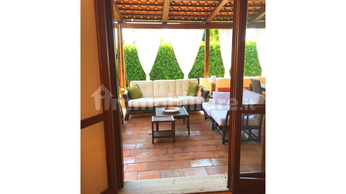 Villa with large garden, sets inside a small private complex, with lido and free beach directly in front of the gate. The property is about 125 square meters and has a large living room, kitchen, three bedrooms and two bathrooms. It also has a well-kept garden of about 500 square meters and a comfortable porch with sofas, armchairs and table with chairs. Another porch is located in front of the kitchen, with table and chairs. There are also 2 extra spaces outside that can be used as storage ro...