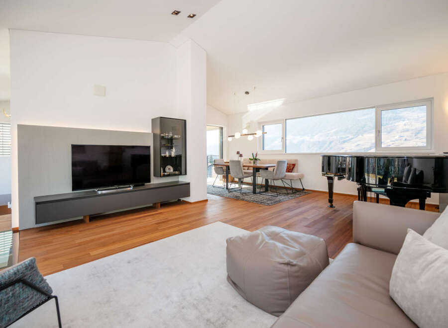 Near the town center of Bressanone, we are offering this attractive semi-detached house with a spacious garden area. The property is located in a quiet residential area with convenient access to the city center. The modern house extends over three floors. On the first floor, you will find a spacious living room with an open-plan kitchen and direct access to the garden, as well as a guest WC. The ground floor offers two bedrooms, two bathrooms, a studio, a laundry room, a cellar with a technical ...