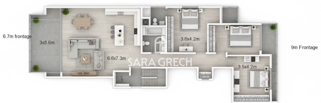 A superb Fully Furnished Apartment, ready for immediate occupation, enjoying an immense amount of natural light, with an optional 2 car Garage. Accommodation comprises of: A very large Front Terrace Fully fledged open plan Kitchen / Living / Dining Bathroom Internal Laundry Room Three Bedrooms En-suite Back Terrace Optional 2 car Garage For further details, kindly contact the assigned Licenced Sales Agent! Three