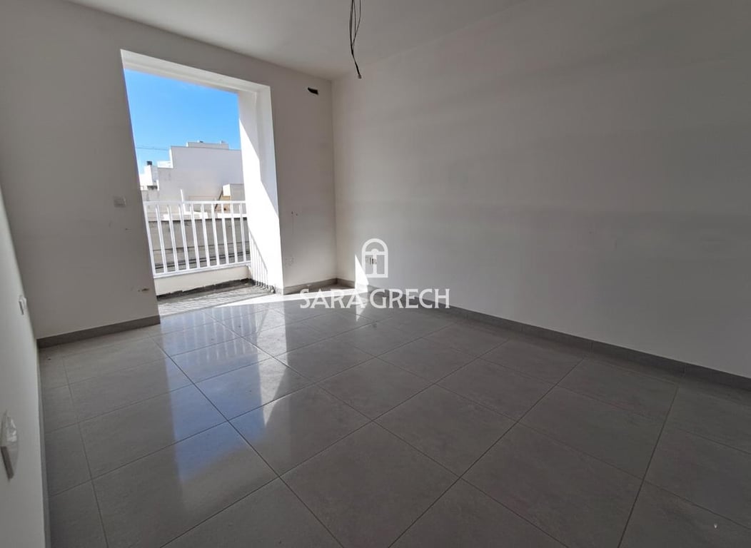 A new 3 bedroom apartment is up for sale having a large sized living / dining room area which is full of light and leads onto a terrace which faces an open space,. There is the main bedroom having a bathroom ensuite and a balcony. There are 2 double bedrooms and also a family bathroom. The apartment is being sold finished excluding bathrooms and doors. Highly recommended.
