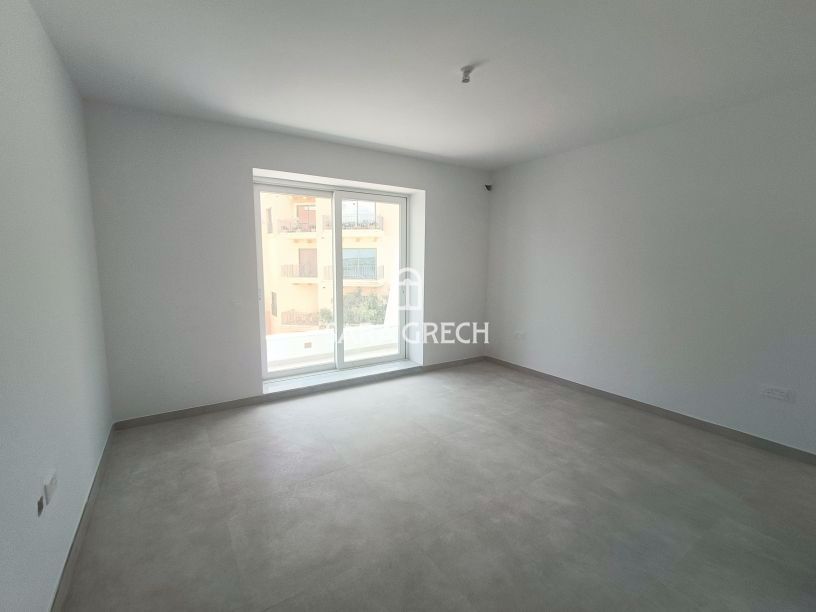 Modern apartment located in a newly built block just off Ghadira Bay. The layout offers an open-plan kitchen, living and dining area leading to a front balcony with side sea views, together with a main bathroom. This residence is being sold finished to high standards, excluding bathrooms and doors, and served with lift. Freehold.