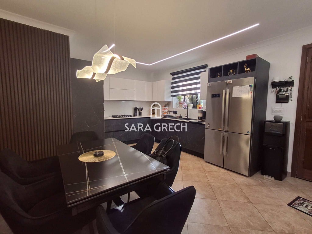 A fully furnished Elevated ground floor 3 bedroom Maisonette is up for sale on the outskirts of Qormi, in a quiet area. Upon entering the property one finds: An open plan Kitchen / Living / Dining room Box Room Internal yard 3 double bedrooms one having a bathroom en-suite Family Bathroom Washroom Backyard This property has recently been renovated and is ready to move into so no extra expense is needed A 2 car Garage is also available at an extra cost