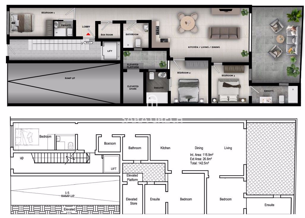 This spacious ground-floor maisonette offers a generous open-plan living, kitchen, and dining area that flows seamlessly onto a private outdoor space. Featuring three bedrooms, Four bathrooms, and high-quality finishes throughout, the property combines comfort with modern design. Delivered fully finished, including bathrooms and doors, it’s an ideal choice for families seeking contemporary living in a central location. For further information, kindly contact the Licenced Exclusive Agent