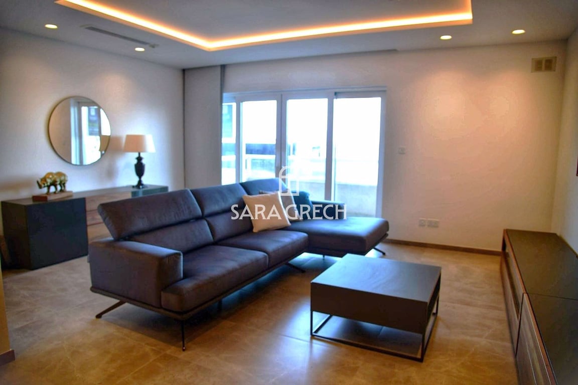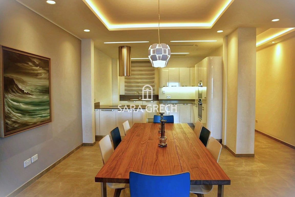 A superb, fully furnished 260 Sqm Seafront Apartment enjoying a very large and well thought of layout and extremely spacious back yard of approx 50 Sqms, as well as an optional street level Garage. A generous accommodation is in the form of: Entrance / Hallway Combined Living / Dining 10 Sqm Front Terrace With Sea Views Separate fully fledged Kitchen /B`fast Guest Toilet internal Washroom Box Room Bathroom Study Area Three Large Double Bedrooms En-suite Walk-in-wardrobe Large 50 Sqm Back Yard...