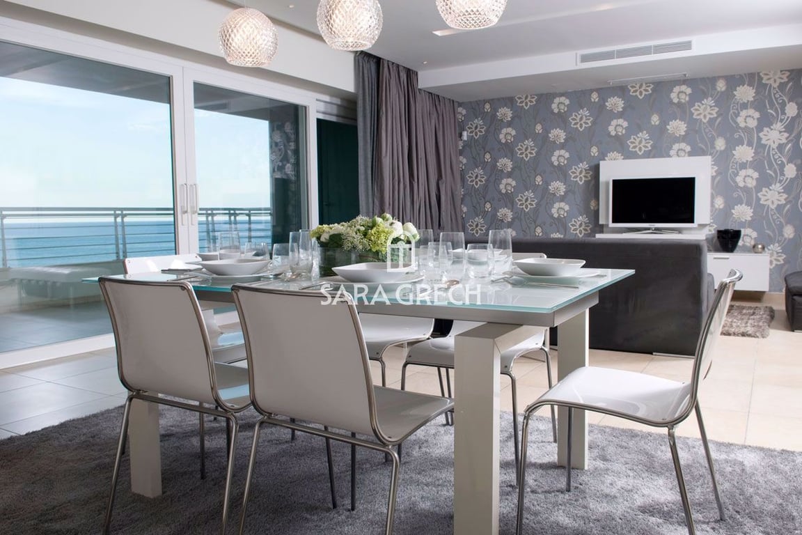 Highly finished 3 bedroom APARTMENT on the front of Qui Si Sana having views of the piazza, sea views, Valletta and Manoel Island. Accommodation having a different layout which consists of an entrance leading to a living / dining with large front terrace, kitchen / breakfast, guest bathroom, laundry room, and three double bedrooms of which the main having an en-suite and a large terrace. Also in this life style property you will benefit from its Private pool, Spa and relaxation facilities. A f...