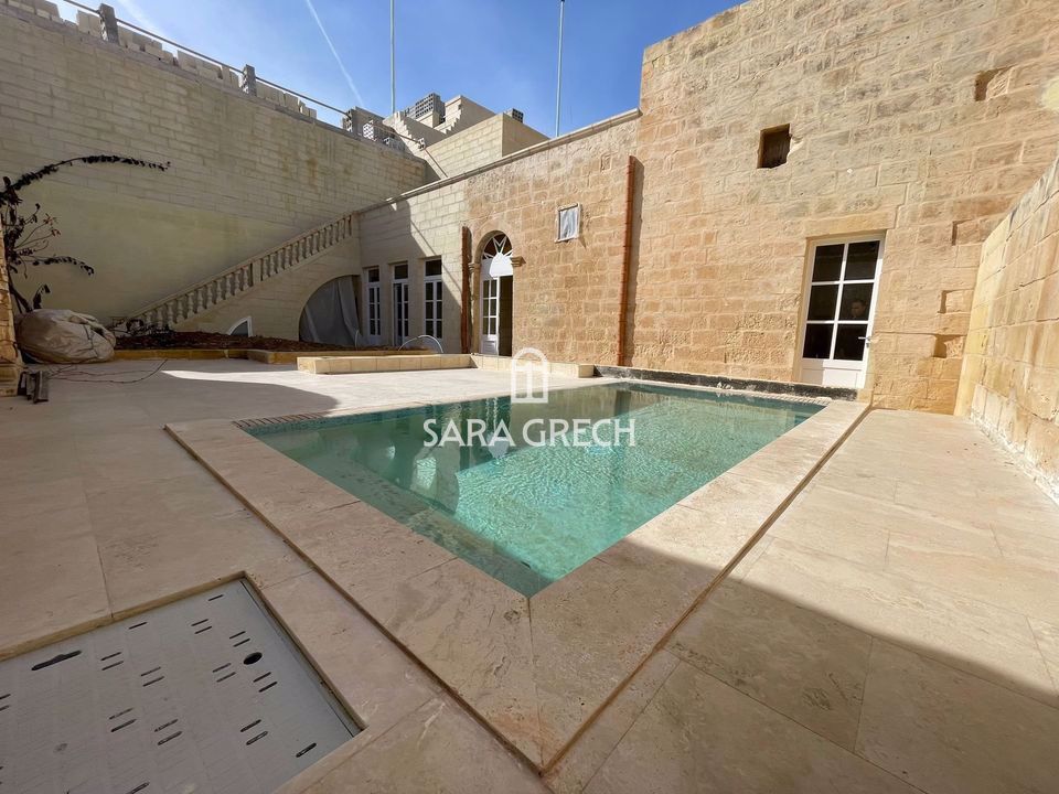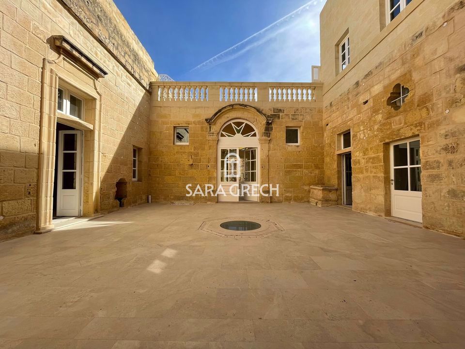 This magnificent palazzo embodies the beauty, history, and distinctive Maltese urban ambiance. The property features over 21 rooms, an impressive 15.5m frontage on one road, and another 10.9m on another, covering a total footprint of approximately 590sqm, including two outdoor spaces at ground level. Upon entering, a stunning hall welcomes guests, flanked by rooms on either side and leading to an impressive courtyard with a grand stone staircase providing access to the upper level. This area als...