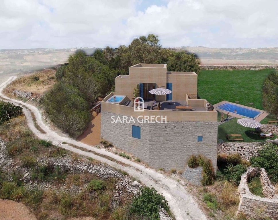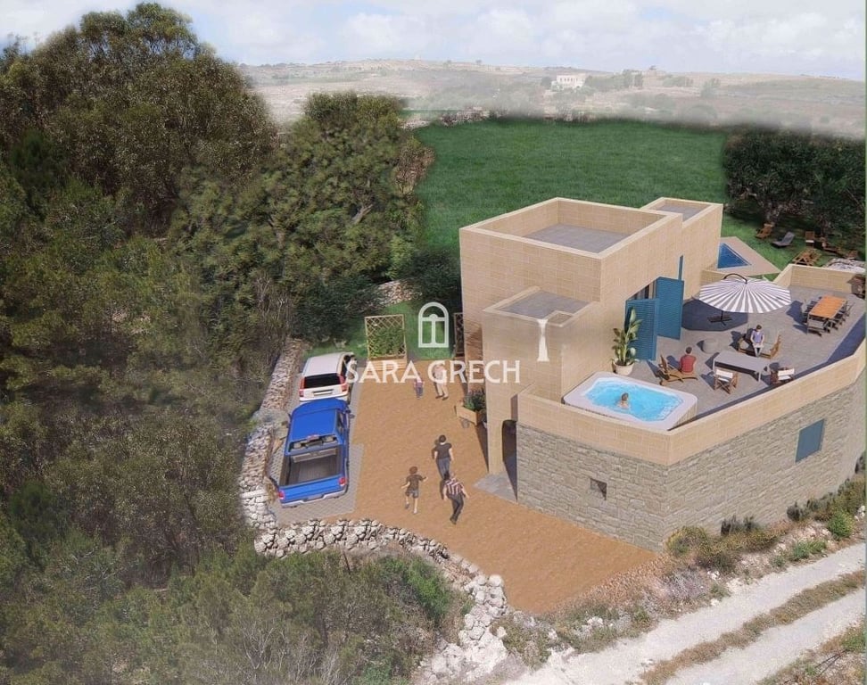 A Unique Fully detached site on 6650 sqm with an existing large Farmhouse in need of reconstruction with an already approved permit for a 200 Sqm property. Within the property one can enjoy various features such as nice well grown trees and shrubs, old rooms and caves. Including underlying accessible and interconnected caves that can be part of the newly built residence. The permit approval includes conversion of such caves to garages for three cars, an underlying wine cellar, gym and sauna...